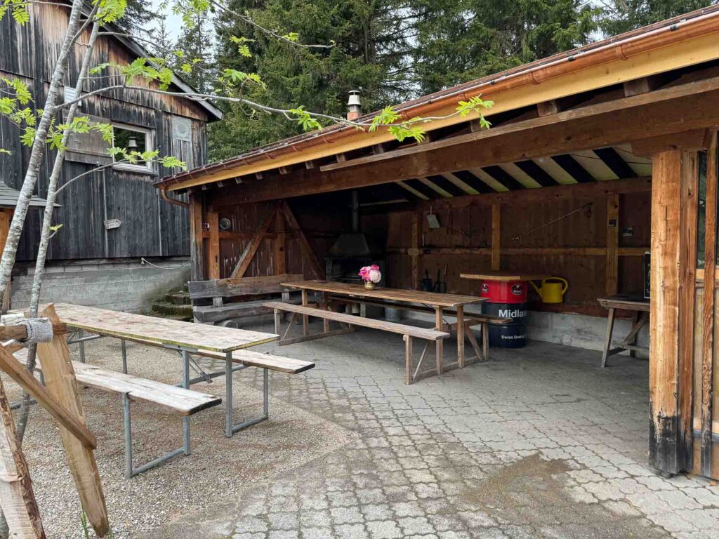 Die Spielwiese mit Bänkli bietet Platz für Aktivitäten im Freien, während ein Bächli zum Abkühlen an heißen Tagen Erfrischung verspricht. Für die ultimative Entspannung sorgen unser Hotpot und die Sauna.